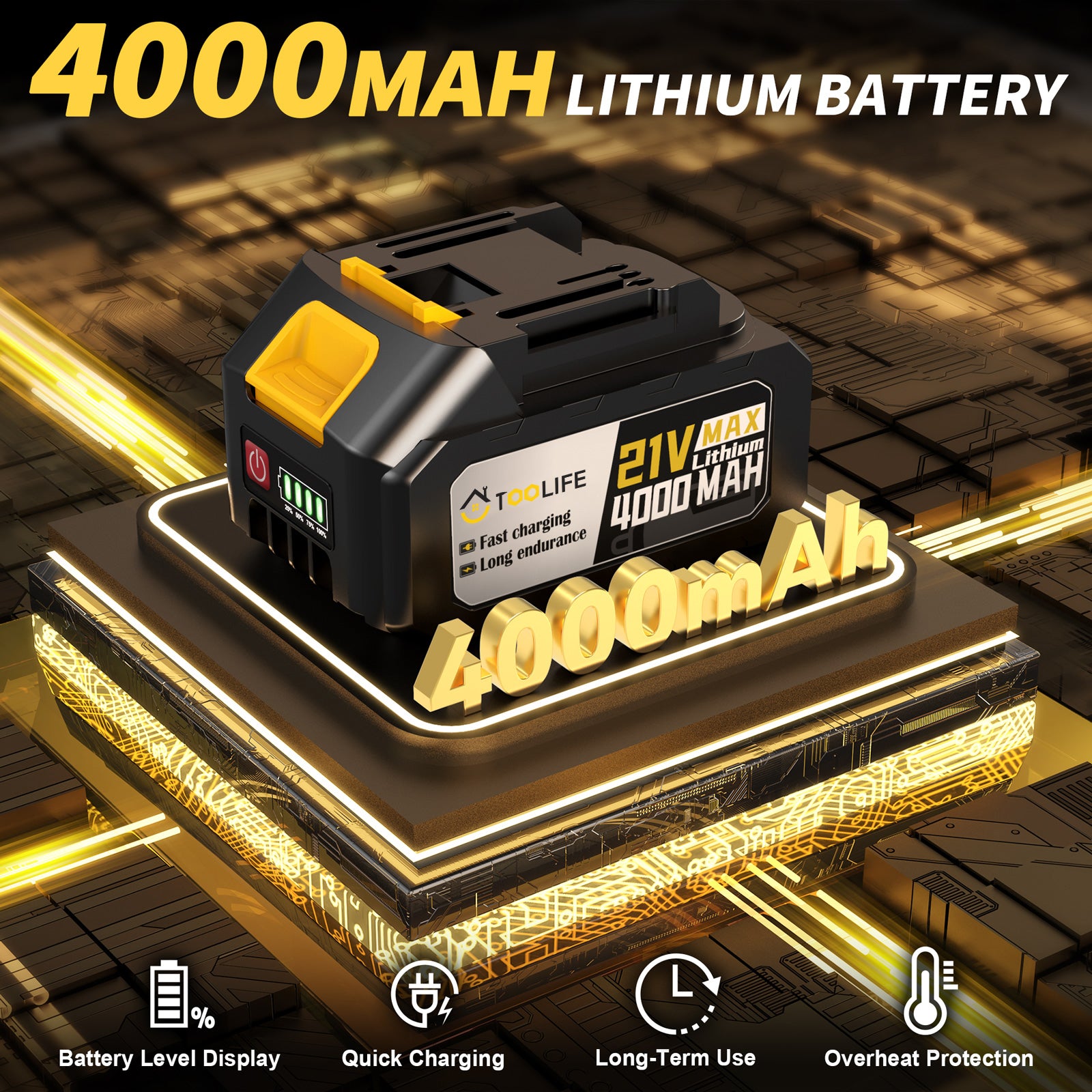 - 2x 4.0 Ah Batteries: High-capacity batteries with 50% increased runtime, reducing the need for frequent battery replacements.